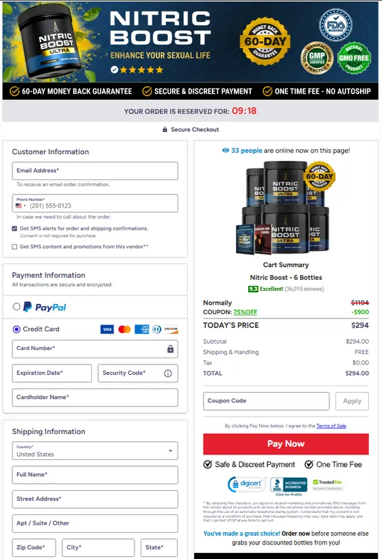 Once you have clicked the “Buy Now” button that is right below this text, you will be taken to the secure checkout page. Just enter your information, and you will then be given instant access to the entire Nitric Boost Official Website.